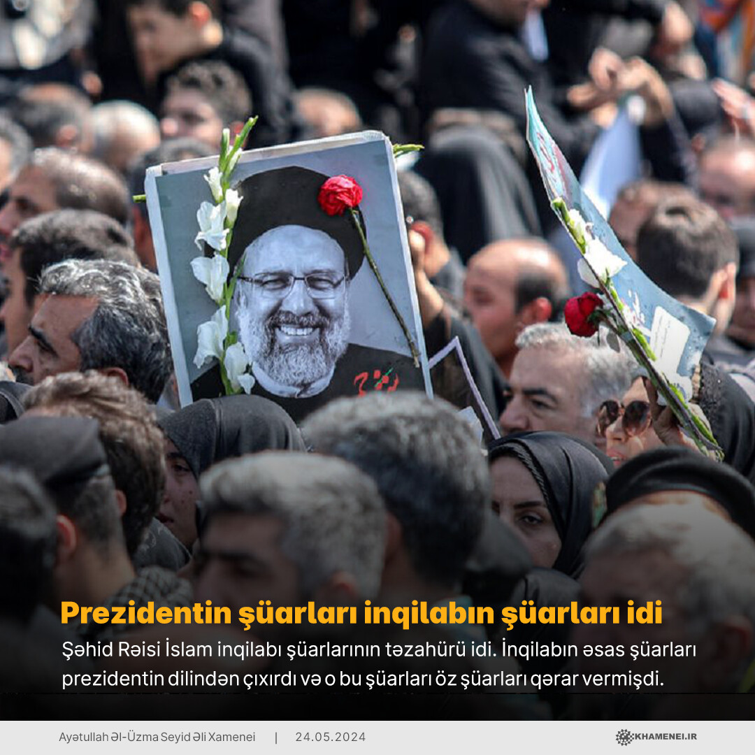 Şəhid Rəisi İslam inqilabı şüarlarının təzahürü idi. İnqilabın əsas şüarları prezidentin dilindən çıxırdı və o bu şüarları öz şüarları qərar vermişdi.